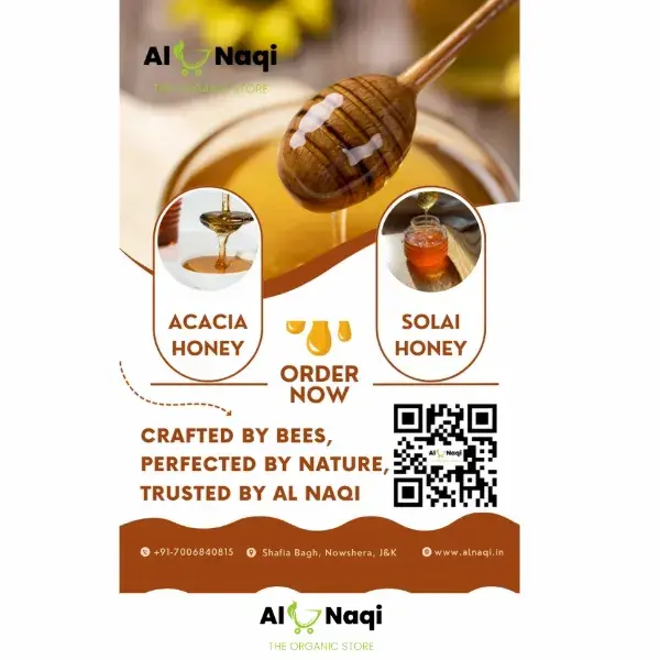 Experience the purity and excellence of the Kashmir Valley—order your jar of Al Naqi Kashmiri Acacia Honey and bring a new standard of quality to your lifestyle or business today.